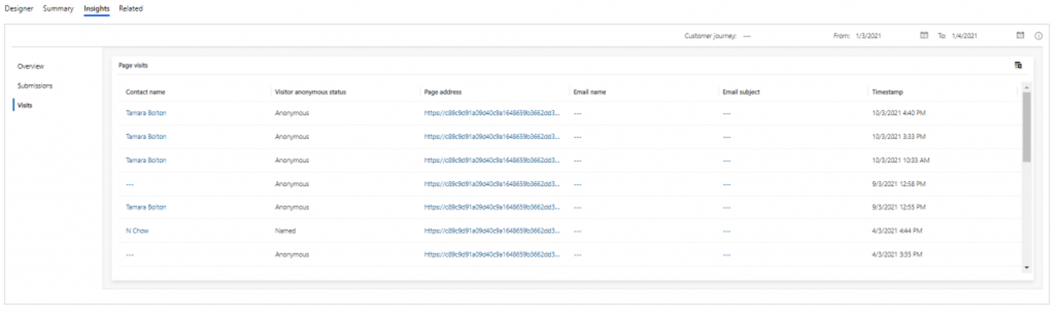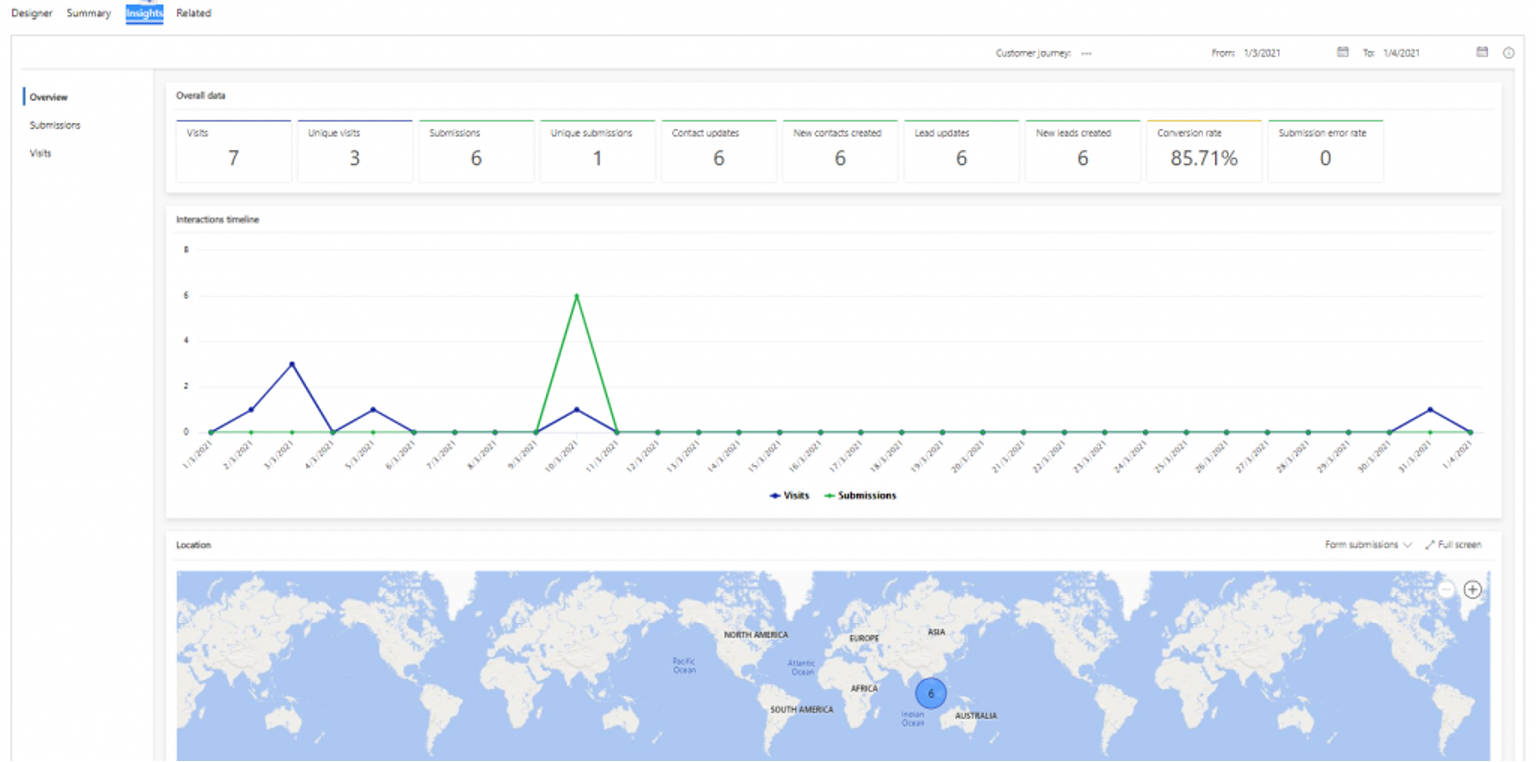 - Owner of website can view statistical insights of total number of visitors to the pages, total number of contacts / leads gets created automatically into the system, geographical information of the visitors, etc
