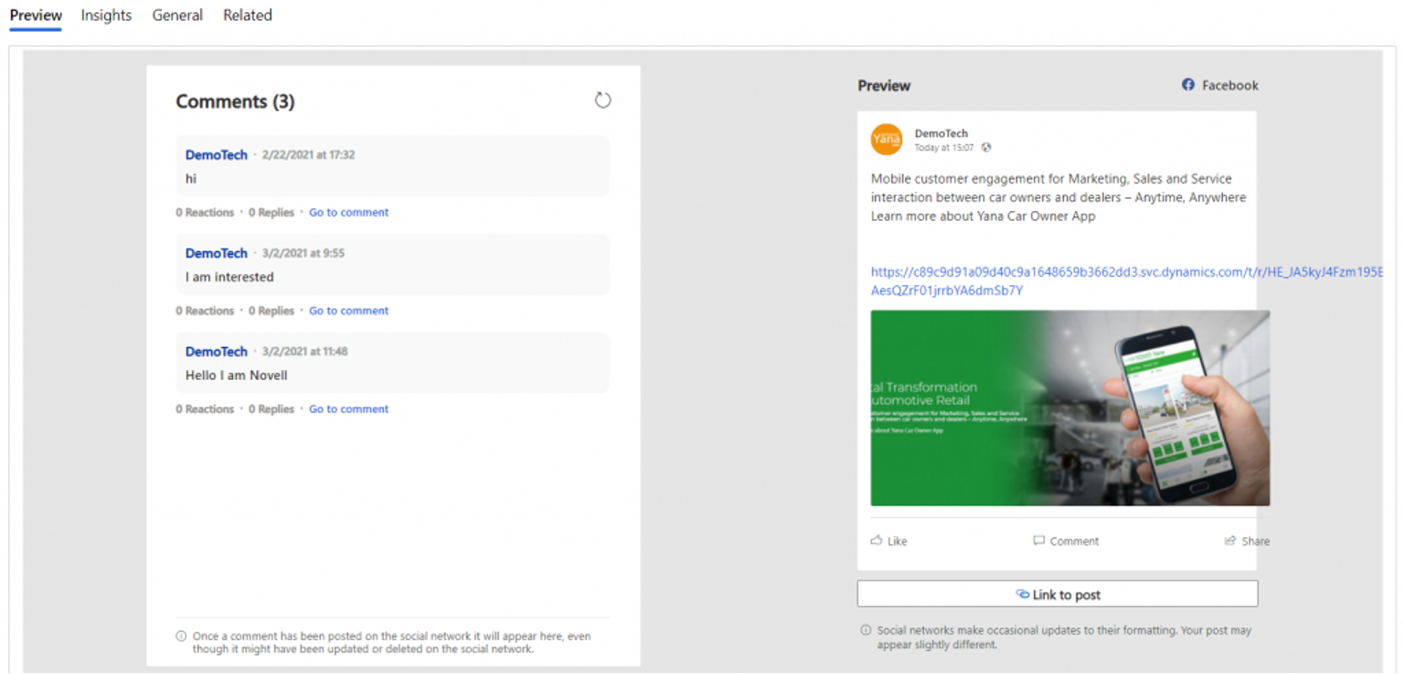 - Get real time insights of any interactions of users on the post (Comments, share, like)