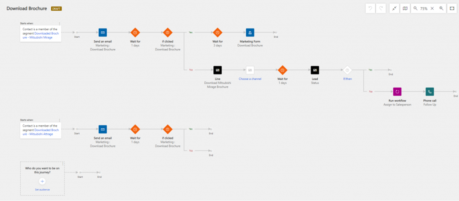 - Customer journey for potential buyers who downloaded a brochure from website.