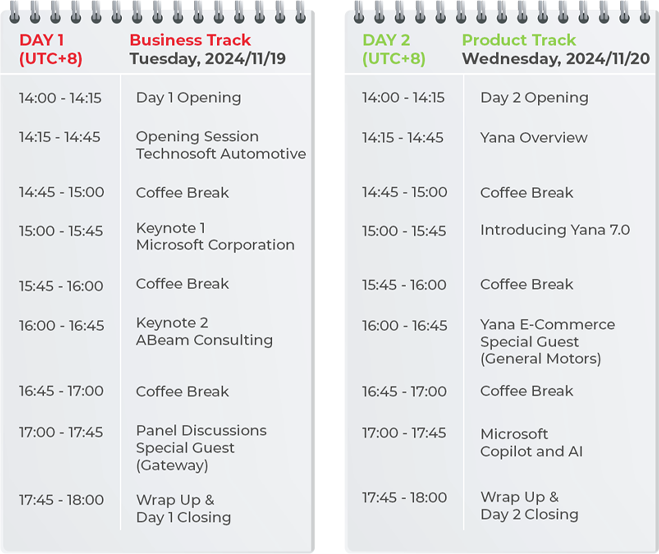 Agenda/Day 1 Business Track & Day 2 Product Track