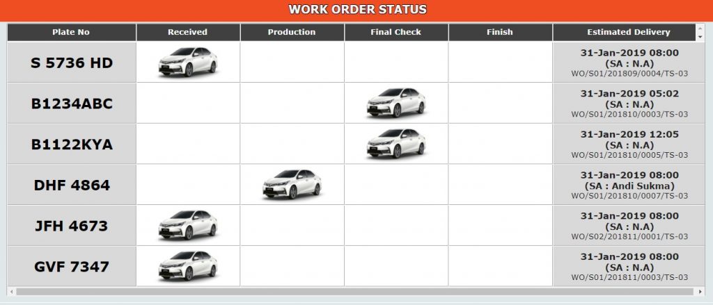 Let everyone, both staff & customer in your workshop to view the progress status of the vehicle without having to ask around or check in the system manually.