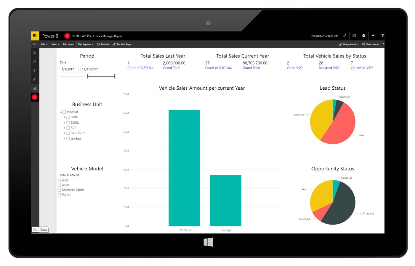 Technosoft Automotive Power BI is a set of business intelligence dashboards for the usage of dealerships, and other businesses in the automotive industry. Designed to run with existing dealer management system and dealer CRM. Technosoft Automotive Power BI was developed by experts of the industry to help automotive retailers effectively collect and analyse their data and digitally transform their automotive business.